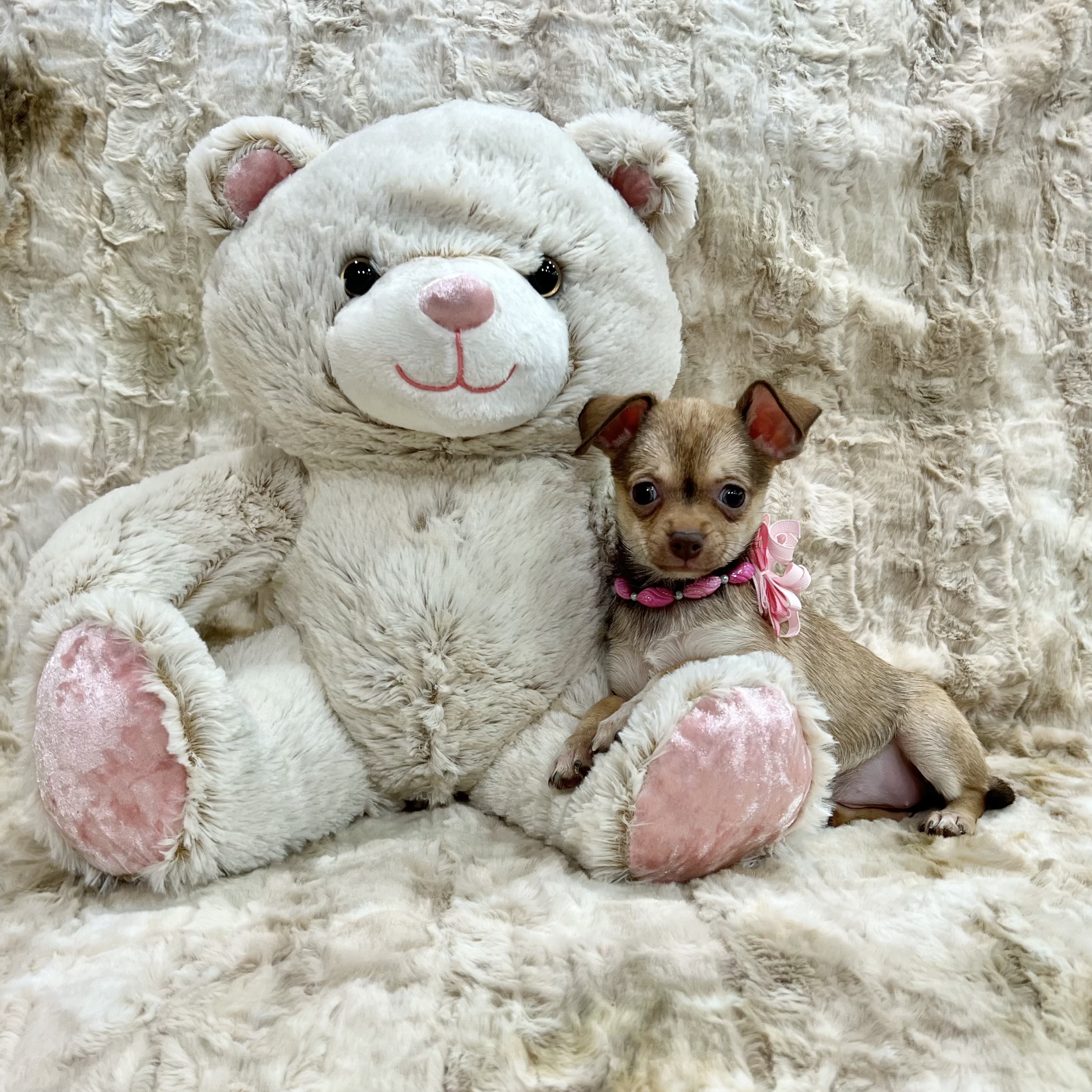Chocolate Sable Fawn Chihuahua/Xolo Girl This precious little princess is charting to be around 6.5 pounds grown. These babies are 6th generation Chihuahua/Toy Xolo. She is extremely playful and active. This baby is $400 with a local pick up near Rogers, Arkansas. We do not ship. We meet only at the location on our Meeting Location page. Please text between 9:00 a.m. and 6:00 p.m. CST. We are available by appointment only. Please read all information on our website prior to texting; it answers many commonly asked questions. |